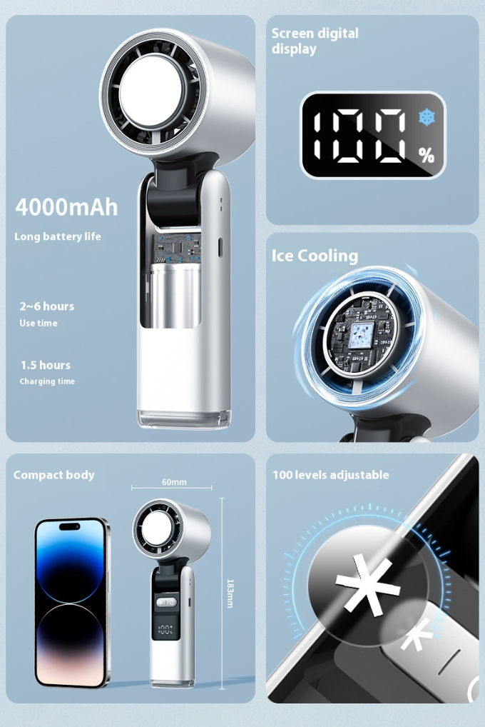 Experience next-level refreshment with advanced semiconductor cooling. Feel the icy chill in seconds—no water, no mist, just pure cool air on demand.